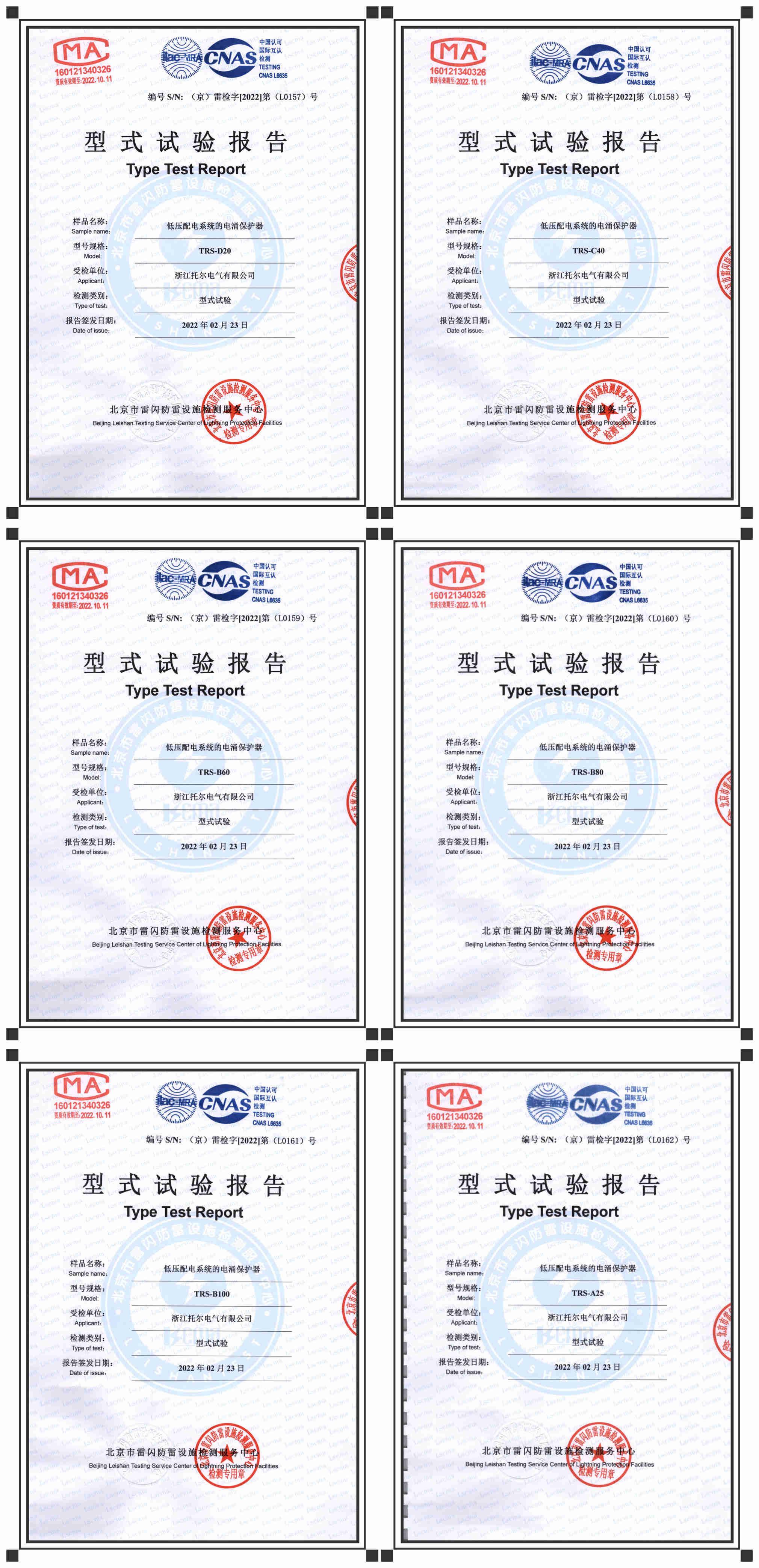 本公司浪涌保護(hù)器依據(jù)新國標(biāo)GB/T18802.11-2020《低壓電涌保護(hù)器(SPD)第11部分 低壓電源系統(tǒng)的電涌保護(hù)器性能要求和試驗(yàn)方法》通過型式試驗(yàn)。