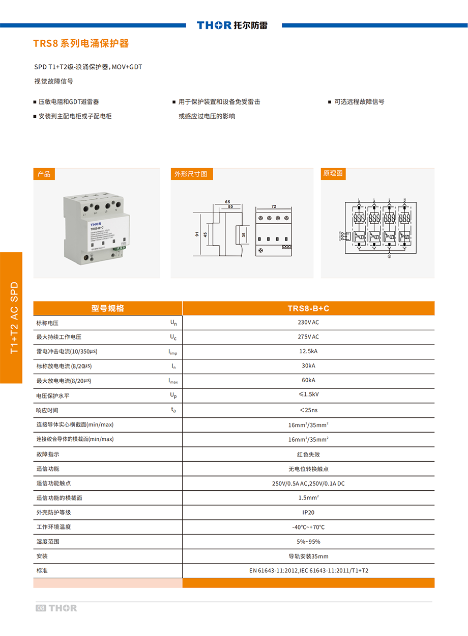 SPD其設(shè)計(jì)依據(jù)符合GB18802.1/IEC61643-1標(biāo)準(zhǔn)。