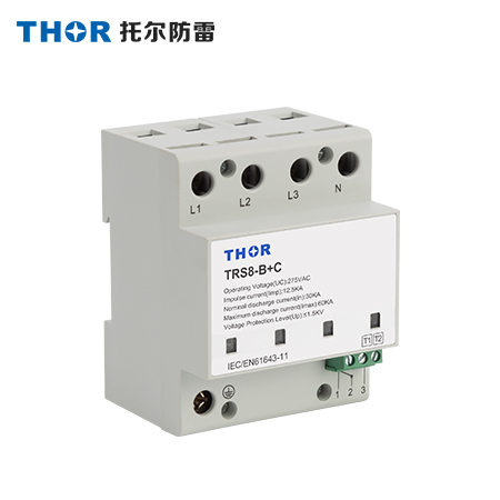 TRS8系列電涌保護(hù)器(以下簡稱SPD)適用于交流50/60Hz,額定電壓至380V的IT、TT、TN-C、 TN-S、TN-C-S,等供電系統(tǒng),對間接雷電和直接雷電影響或其他瞬時(shí)過電壓的電涌進(jìn)行保護(hù)。